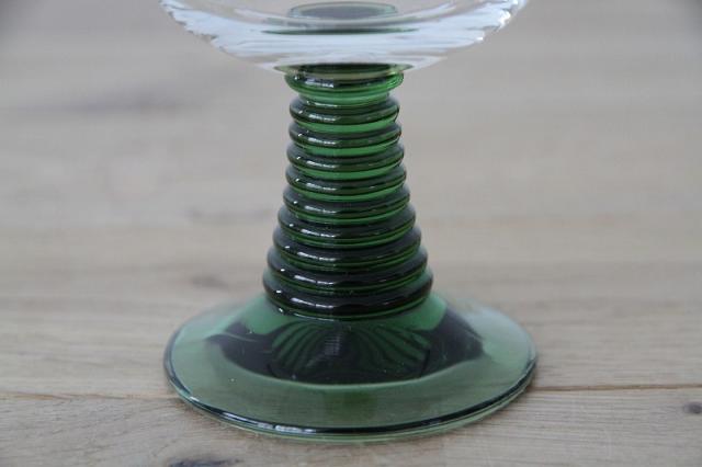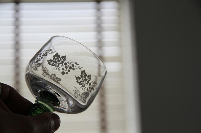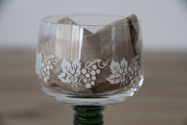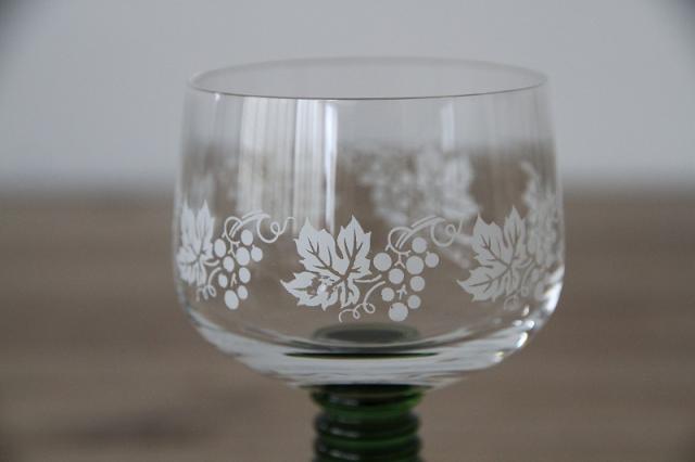 ドイツの伝統的なワイングラス「Romer Glass」レーマーグラスです。葡萄の絵柄や段々が付いたグラスの脚部分がデザインの特徴です。