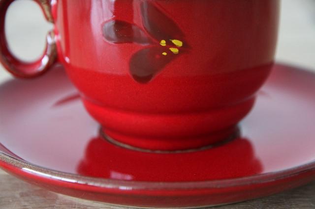 ドイツWINTERLING社のレトロなカップ&ソーサーです。ぽってり艶やかな釉薬使いがとても印象的。深く惹きこまれるな美しい赤の色は見事です。