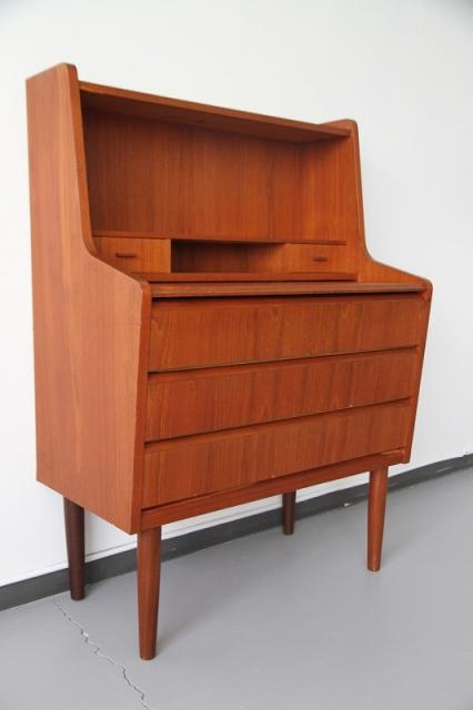 北欧デンマーク買付のライティングビューローです。ビューローとは、書棚や引き出しなどの収納家具とデスクが一体化した家具のことをいいます。これは天板を手前に引き出すことでデスクとして使用することが出来るタイプのデザインです。