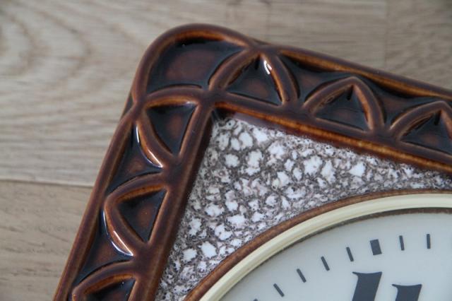 ドイツEMES社製の陶器製掛時計。1枚のタイルのような素敵なデザインです。大きくヒビが一本入っていますので詳細写真でお確かめください。