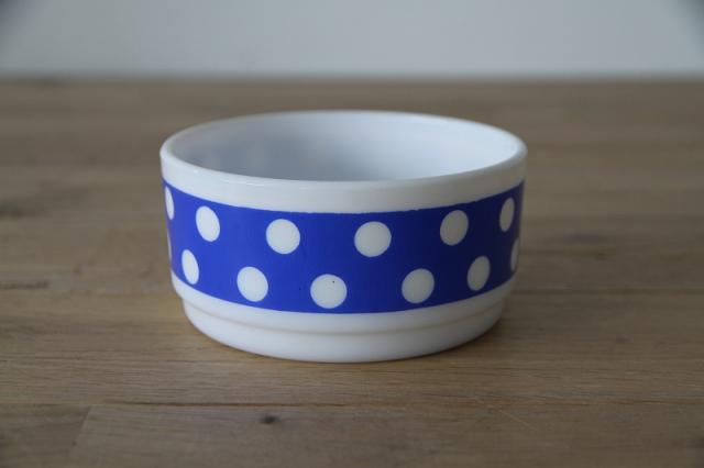 耐熱食器ミルクガラスで有名なフランスArcopal(アルコパル)のボウルです。レトロなドットプリントが可愛いです。