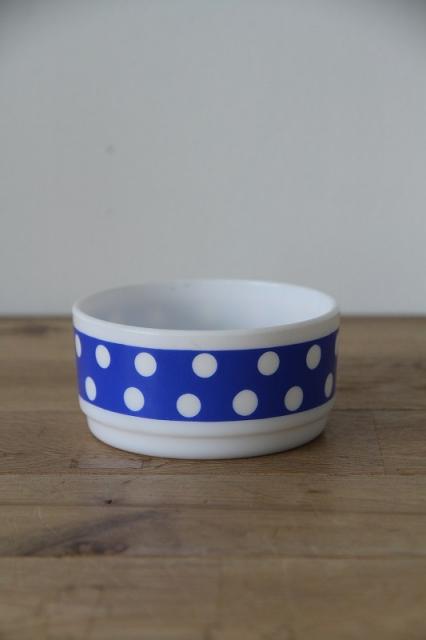耐熱食器ミルクガラスで有名なフランスArcopal(アルコパル)のボウルです。レトロなドットプリントが可愛いです。