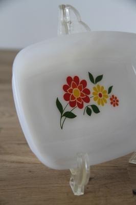 耐熱食器ミルクガラスで有名なフランスArcopal(アルコパル)の少し深さがあるお皿です。長方形型が良いです。フラワープリントがレトロで可愛い一点です。