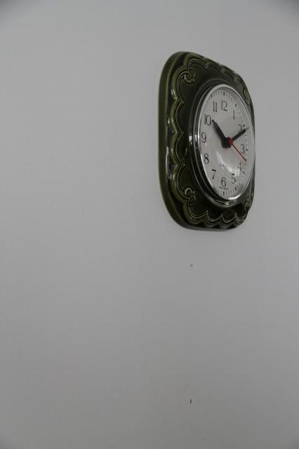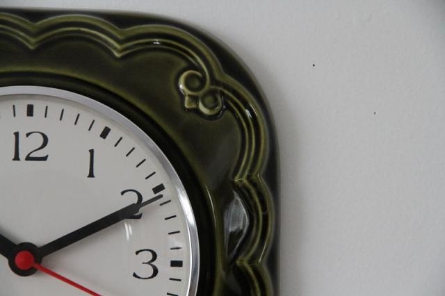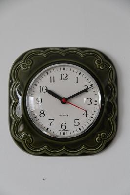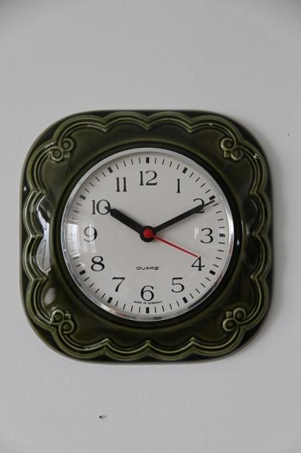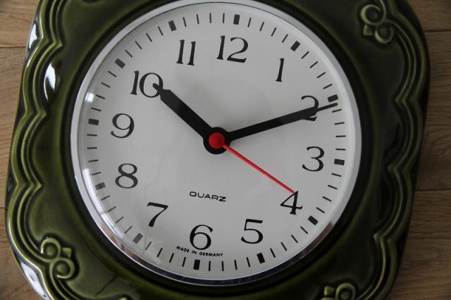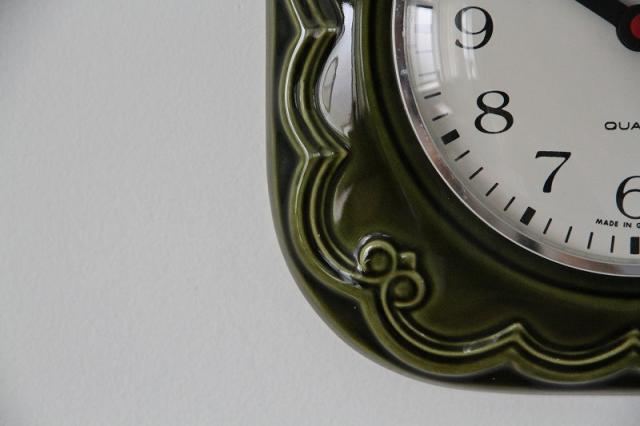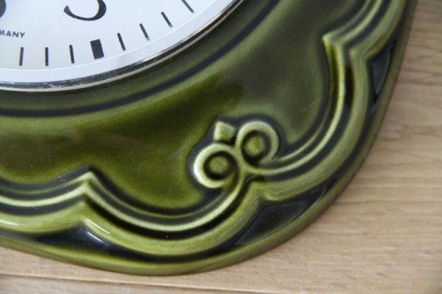 ドイツ製ヴィンテージの掛時計、陶器製です。人気のグリーン系デザインが入荷しました。