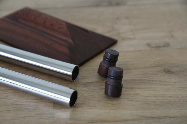 なめらかなステンレスと深みのある木材のコントラストが美しいデザインです。シンプルながらも存在感があり、食卓にも自然に馴染みます。