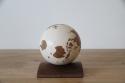 陸地部分は天然木、水面部分は樹脂製です。台座は地球儀を固定するための窪みがあります。