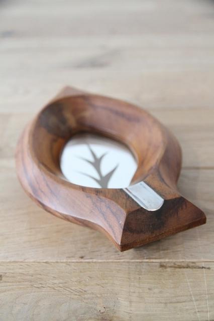 葉っぱデザインのヴィンテージ木製灰皿です。