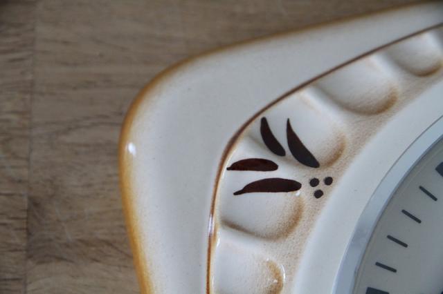 思わず二度見してしまう、ちょっとレトロで個性的な陶器の掛時計。