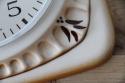 ドイツ製ヴィンテージの陶器製掛時計です。優しい色合いとハンドペイントの可愛らしいデザインがポイントです。