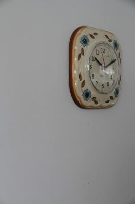 思わず二度見してしまう、ちょっとレトロで個性的な陶器の掛時計。