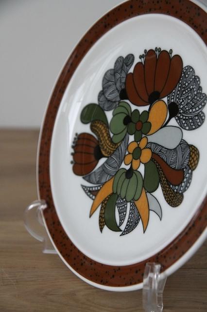 レトロなボタニカル柄がとても印象的なドイツRosenthal社製thomasの"Kiruna"シリーズのデザートプレート。Rorstrandで活躍したHertha Bengtsonによるデザインです。