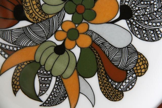 レトロなボタニカル柄がとても印象的なドイツRosenthal社製thomasの"Kiruna"シリーズのデザートプレート。Rorstrandで活躍したHertha Bengtsonによるデザインです。