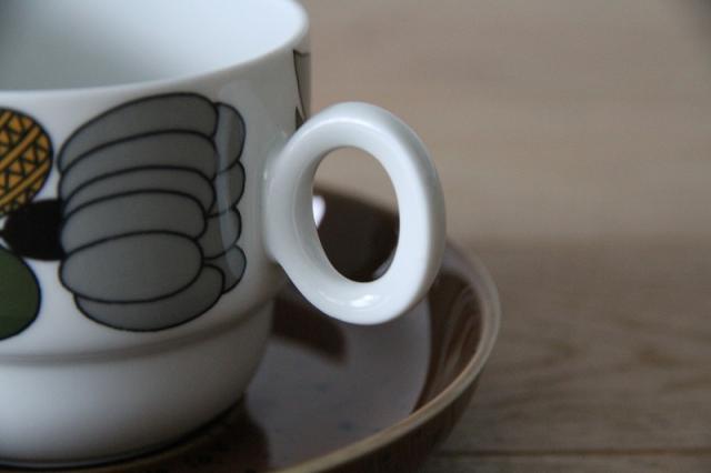 レトロなボタニカル柄がとても印象的なドイツRosenthal社製thomasの"Kiruna"シリーズのカップ&ソーサー。Rorstrandで活躍したHertha Bengtsonによるデザインです。