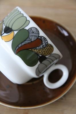 レトロなボタニカル柄がとても印象的なドイツRosenthal社製thomasの"Kiruna"シリーズのカップ&ソーサー。Rorstrandで活躍したHertha Bengtsonによるデザインです。