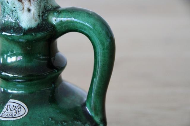西ドイツにて製造されていた'Fat Lava'と呼ばれる陶磁器で、1848年創業と言われているJopeko社製のフラワーベース。軽石のように凹凸ある釉薬と艶感ある鮮やかな緑のバランスが素敵な一点です。