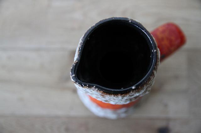 西ドイツにて製造されていた'Fat Lava'と呼ばれる陶磁器で、1848年創業と言われているJopeko社製のフラワーベース。軽石のように凹凸ある釉薬と艶感ある鮮やかなオレンジのバランスが素敵な一点です。
