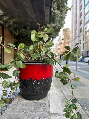 西ドイツにて製造されていた'Fat Lava'と呼ばれる陶磁器で、1848年創業と言われているJopeko社製のフラワーポット。力強さを感じる赤と黒のカラーコンビネーションと、とクレーターのような凹凸あるフォルムは唯一無二の世界観を感じます。