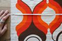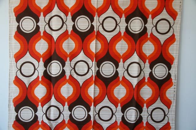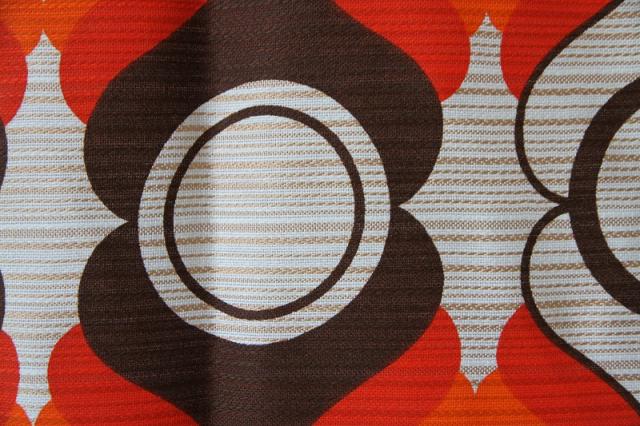 ミッドセンチュリーな雰囲気漂うヴィンテージのファブリックです。オレンジ×ブラウンのレトロカラーがとても良いです。季節問わずお使いいただける質感の生地。壁に掛けたり、カーテンとしてアレンジをするのにもおすすめです。