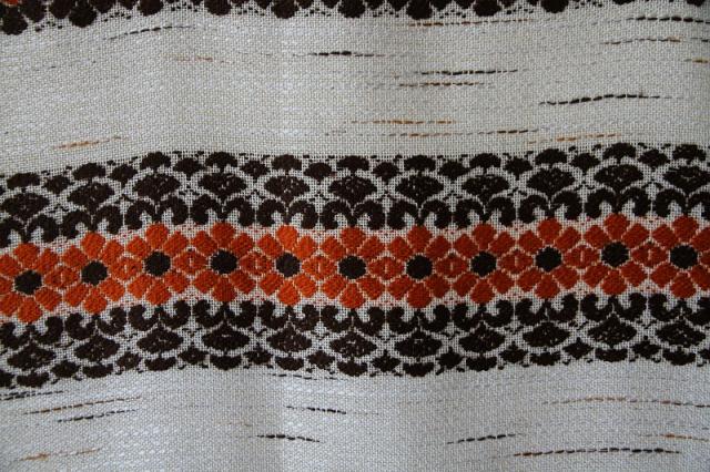 1970年代製のカーテンファブリックです。どこかノスタルジックな雰囲気漂うレトロさが引き立つデザイン。太さの違う糸で織られているので独特な凹凸感が出ることによる表情が大変見事なヴィンテージファブリック。グッドコンディションです。とても貴重な大判サイズ。壁に掛けたり、ベッドカバーやソファーカバーにしたり気軽にインテリアに取り入れてみてください。
