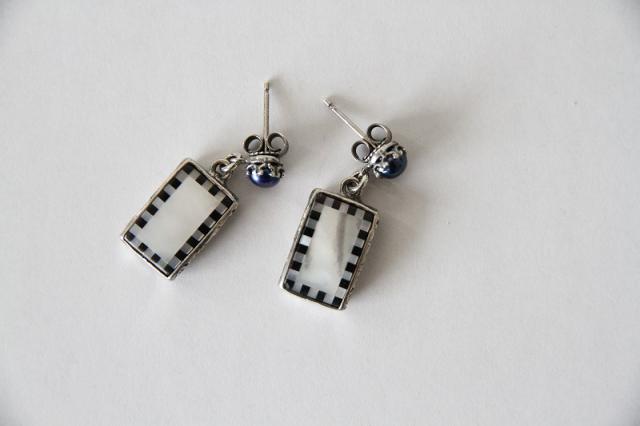 スターリングシルバーに白蝶貝を象嵌したオニキスとパールを組合わせたピアス。唯一無二の特別感を味わえるGEM KINGDOMのジュエリーです。
