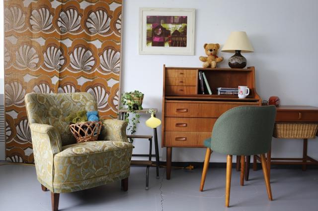北欧デンマーク買付便の一人がけソファーです。クラシカルな雰囲気の花柄ファブリックが雰囲気を上げてくれます。コンパクトサイズでスペースをあまり使わずにセッティングできます。