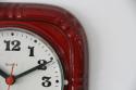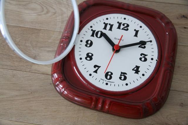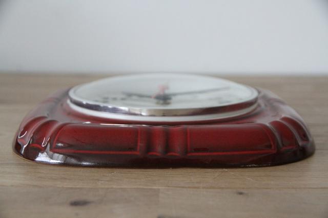 ドイツ製ヴィンテージの陶器製掛時計です。吸い込まれるかのような美しい赤の色がとても印象的な一点です。