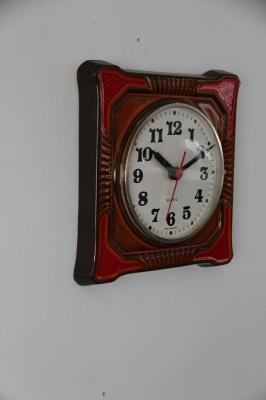ドイツヴィンテージの陶器製掛時計です。お部屋を明るく照らしてくれるような鮮やかなオレンジ色が魅力的な一点です。