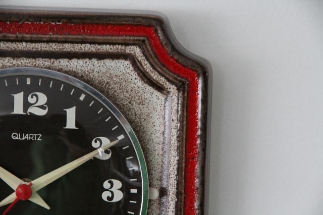 ドイツヴィンテージの陶器製掛時計です。FatLavaを彷彿させる色合いと質感、とても存在感ある一点です。