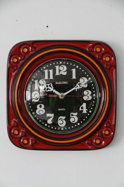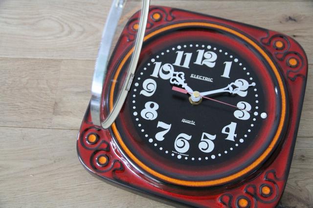 1960年代あたりのドイツ製ヴィンテージの掛時計です。強烈なレトロ感を醸し出す色使いがとても印象的ですね。