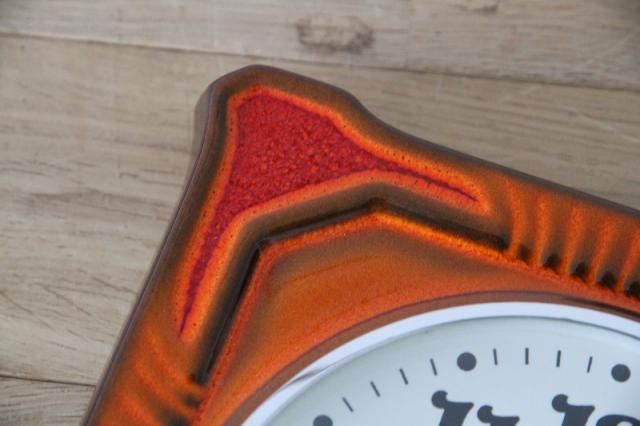 ドイツヴィンテージの陶器製掛時計です。お部屋を明るく照らしてくれるような鮮やかなオレンジ色が魅力的な一点です。