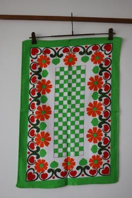 1970年代製のレトロなキッチンタオルです。キッチンを賑やかにしてくれるレトロプリントがとっても華やか。デットストック品です。
