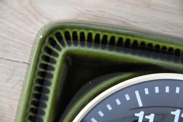 ドイツ製ヴィンテージの陶器製掛時計です。文字盤も含め、深い緑の色が印象的な一点。緑や青など寒色系はなかなか貴重です。