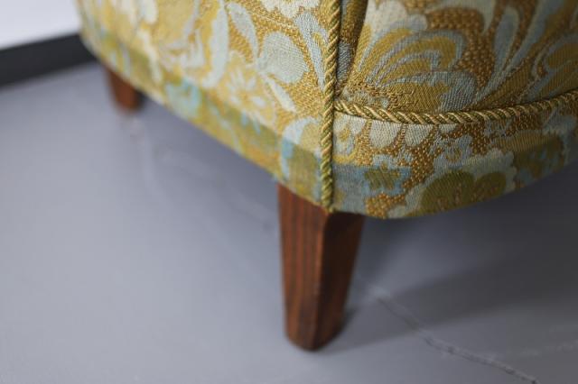 北欧デンマーク買付便の一人がけソファーです。クラシカルな雰囲気の花柄ファブリックが雰囲気を上げてくれます。コンパクトサイズでスペースをあまり使わずにセッティングできます。