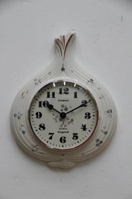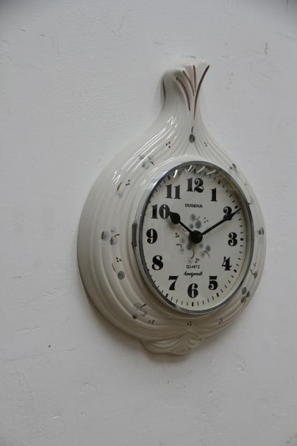 ドイツDUGENA社製の陶器製掛時計。まるでたまねぎのようなフォルムがとってもキュート!おそらくハンドペイントと思われる木の実のようなモチーフもさらにレトロな雰囲気を醸し出しています。