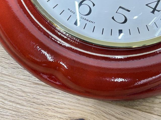 ドイツ製ヴィンテージ・陶器製の掛時計は1970年代の頃のもの。トマトかりんごでしょうか♪ キッチンやダイニングにピッタリの掛時計です。