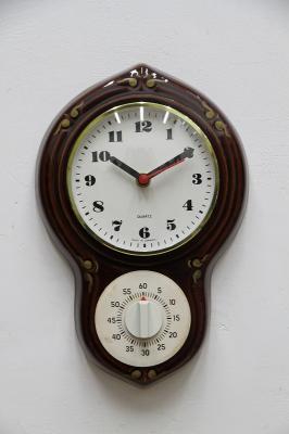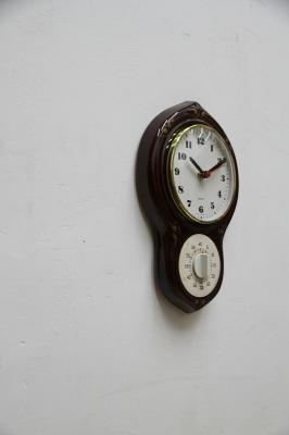 ドイツ製ヴィンテージの陶器製掛時計。昔懐かしい柱時計のようなフォルムが印象的ですね。タイマーにはW.GERMANYと刻まれています。