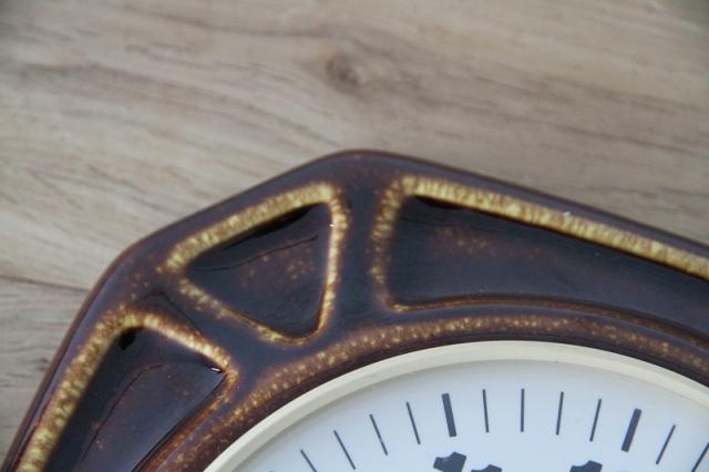 ドイツ製の陶器製掛時計。つややかな釉薬が目を惹きます。ブラウンを貴重としたデザインなのでお部屋に馴染みやすいです。
