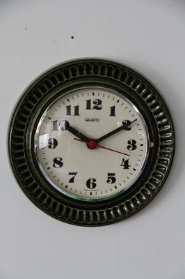 思わず二度見してしまう、ちょっとレトロで個性的な陶器の掛時計。