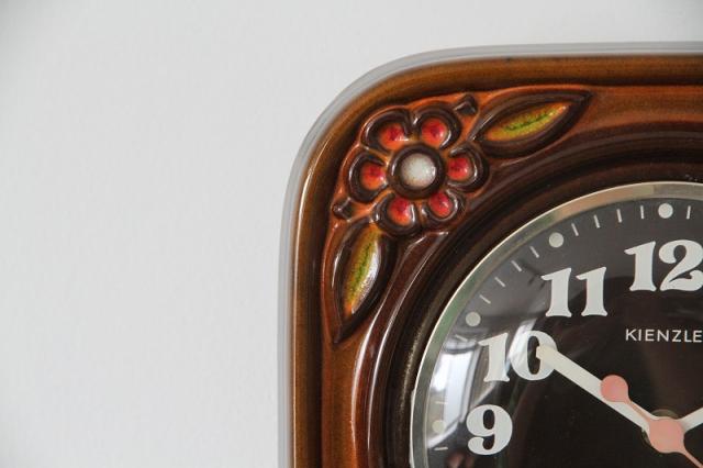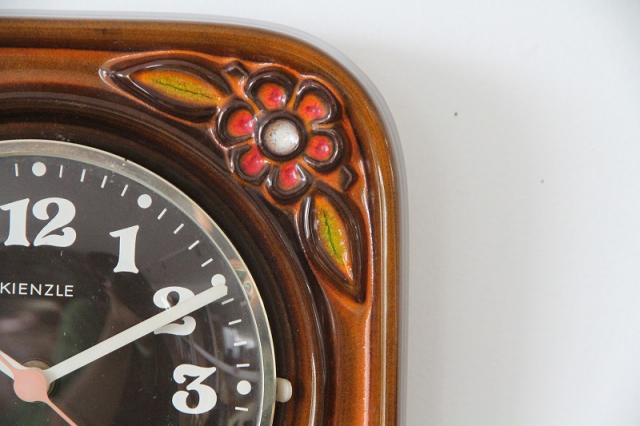ドイツKIENZLE社製ヴィンテージの陶器製掛時計です。レトロなお花模様が目を惹きますね。色褪せた秒針も全体のレトロ感をさらにアップしてくれているようです。