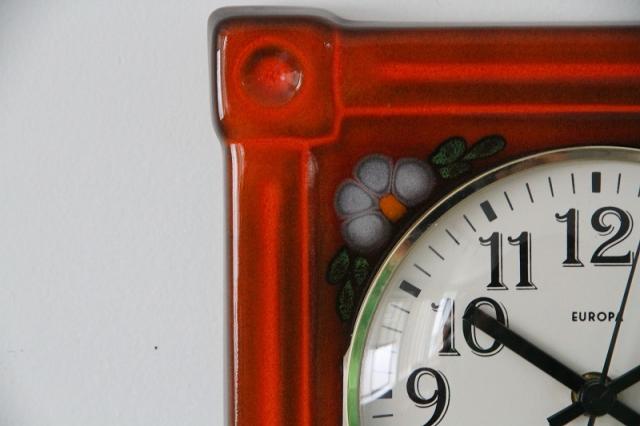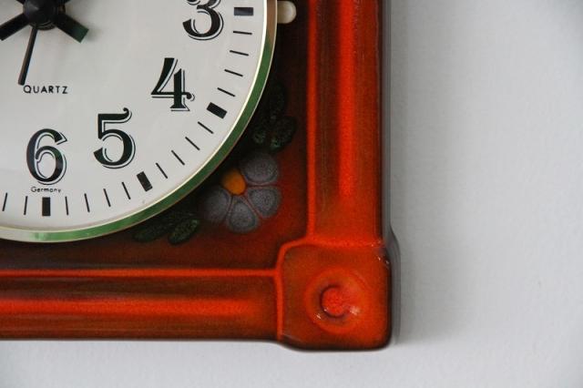 ドイツEUROPA社製の陶器製掛時計は60-70年代製のヴィンテージ品です。ハンドペイントのようなフラワーモチーフがレトロ感を感じさせるデザインです。