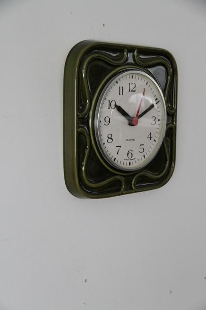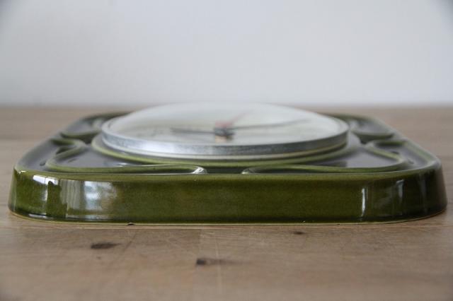 ドイツヴィンテージの陶器製掛時計です。深い緑色がとても印象的な一点。貴重な緑色、入荷しました。